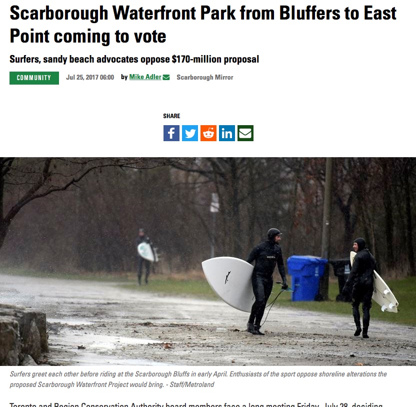 That’s because a plan to develop the western portion of the Scarborough coastline could cut into what local surfers say is one of the best surf spots in the city.